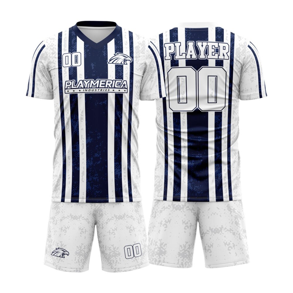 Premium custom soccer uniform set with fully personalized jerseys & shorts. Free mockups available. Perfect for clubs, schools, and leagues.